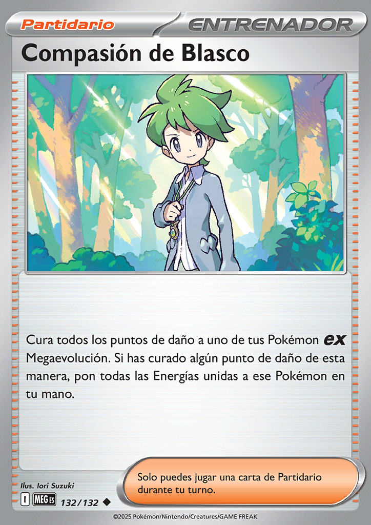 | Cura todos los puntos de daño a uno de tus Pokémon ex Megaevolución. Si has curado algún punto de daño de esta manera, pon todas las Energías unidas a ese Pokémon en tu mano. |