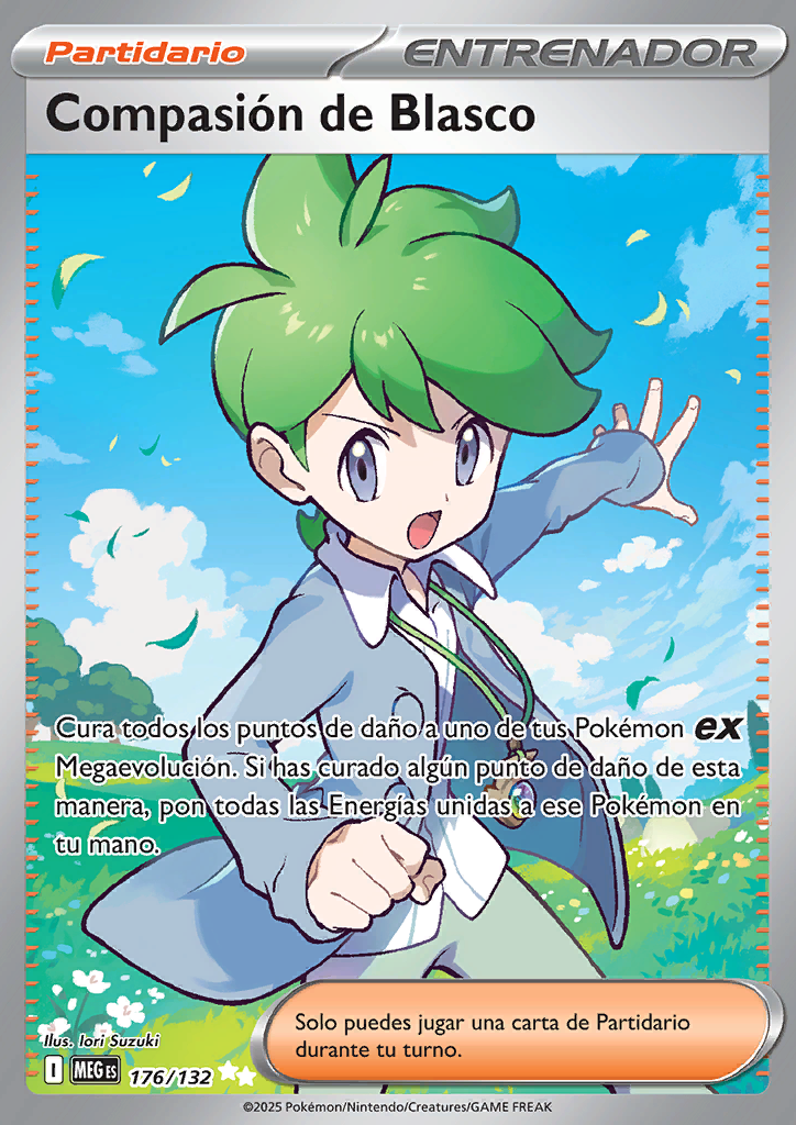 | Cura todos los puntos de daño a uno de tus Pokémon ex Megaevolución. Si has curado algún punto de daño de esta manera, pon todas las Energías unidas a ese Pokémon en tu mano. |
