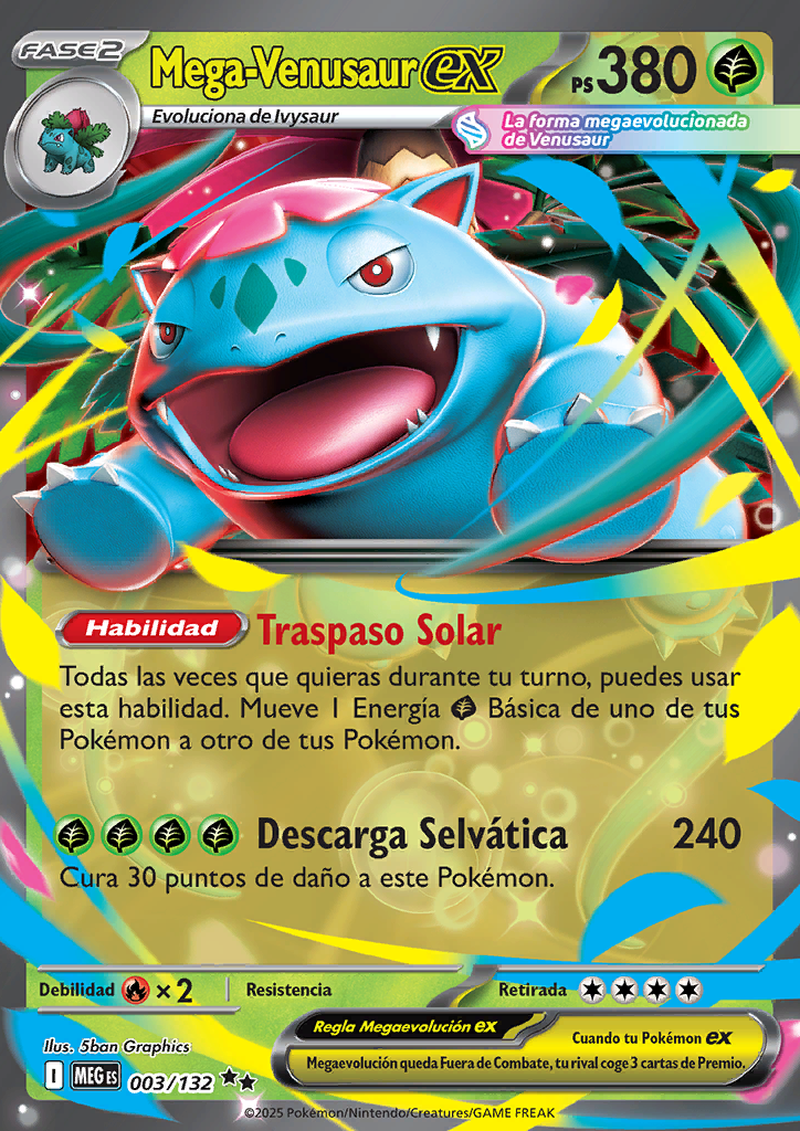 Cuando tu Pokémon ex Megaevolución queda Fuera de Combate, tu rival coge 3 cartas de Premio. |