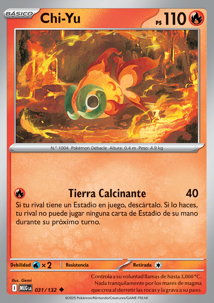 Tierra Abrasadora Si tu rival tiene un Estadio en juego, descártalo. Si lo haces, tu rival no puede jugar ninguna carta de Estadio de su mano durante su próximo turno. |
