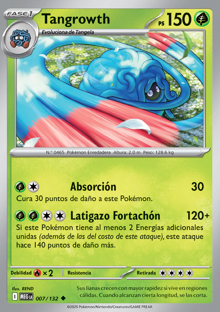 Latigazo Vigorizado Si este Pokémon tiene por lo menos 2 Energías adicionales unidas (además de las del coste de este ataque), este ataque hace 140 puntos de daño más. |