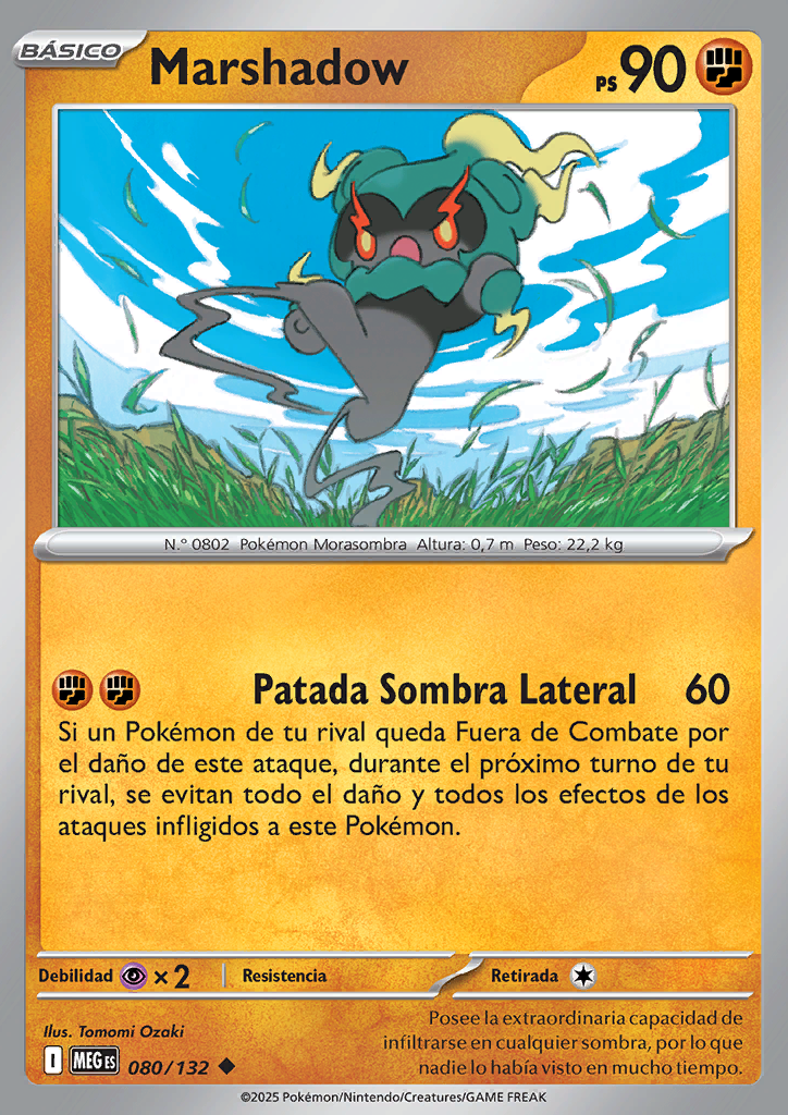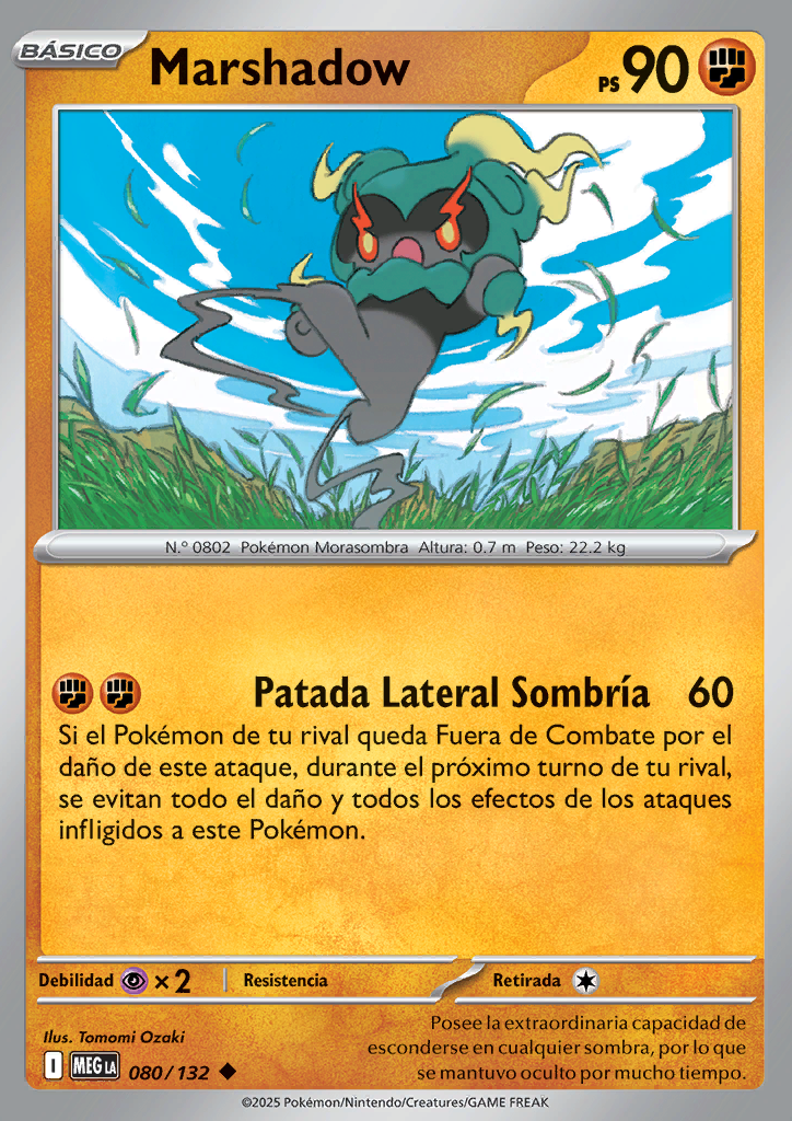 Patada Sombra Lateral Si un Pokémon de tu rival queda Fuera de Combate por el daño de este ataque, durante el próximo turno de tu rival, se evitan todo el daño y todos los efectos de los ataques infligidos a este Pokémon. |