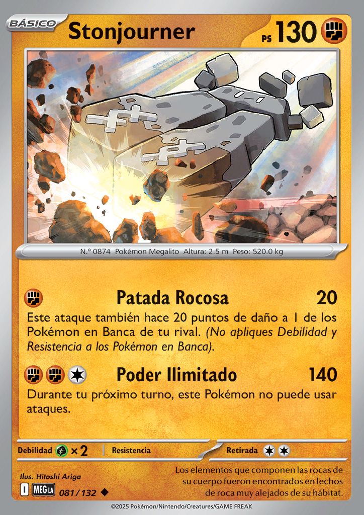 Patada Rocosa Este ataque también hace 20 puntos de daño a uno de los Pokémon en Banca de tu rival. (No apliques Debilidad y Resistencia a los Pokémon en Banca). |