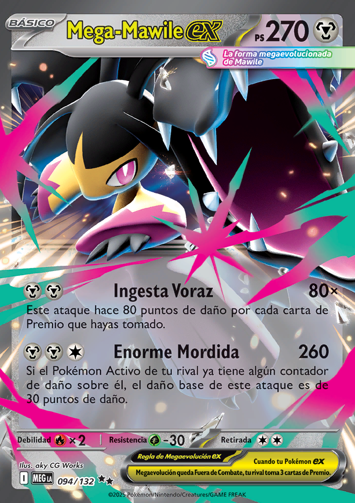Cuando tu Pokémon ex Megaevolución queda Fuera de Combate, tu rival coge 3 cartas de Premio. |