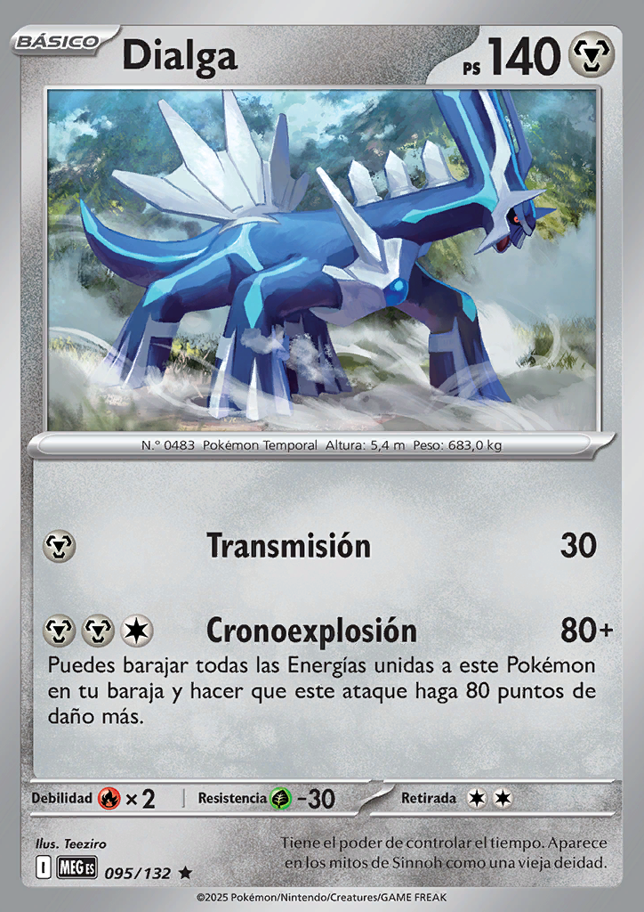 Cronoexplosión Puedes barajar todas las Energías unidas a este Pokémon en tu baraja y hacer que este ataque haga 80 puntos de daño más. |