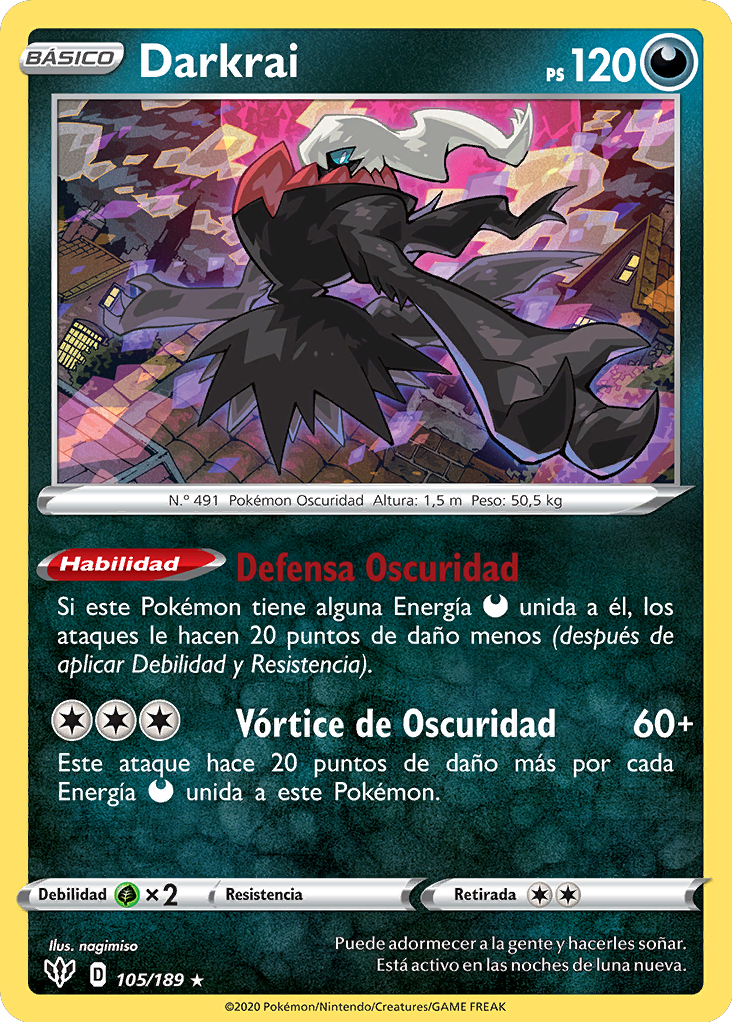Vórtice de Oscuridad Este ataque hace 20 puntos de daño más por cada Energía Darkness unida a este Pokémon. |