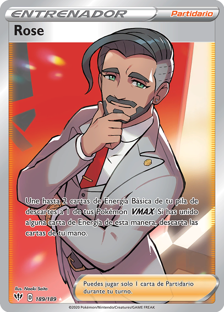 | Une hasta 2 cartas de Energía Básica de tu pila de descartes a 1 de tus Pokémon VMAX. Si has unido alguna carta de Energía de esta manera, descarta las cartas de tu mano. |