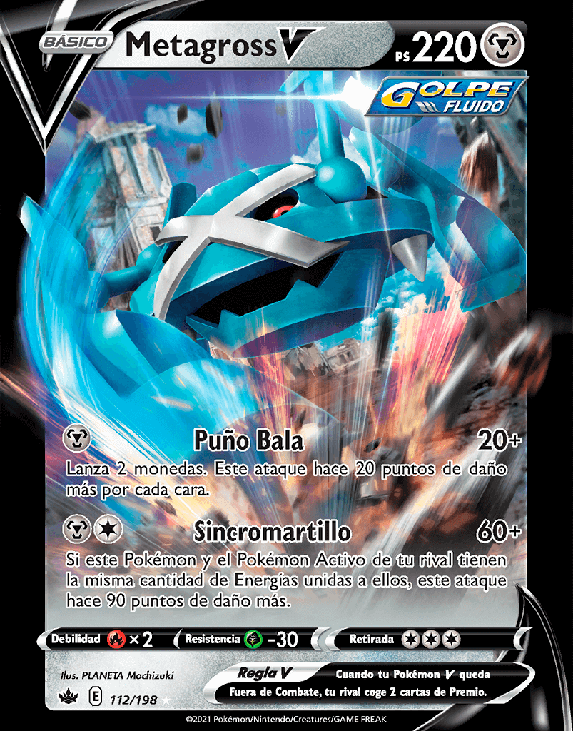Cuando tu Pokémon V queda Fuera de Combate, tu rival coge 2 cartas de Premio. |