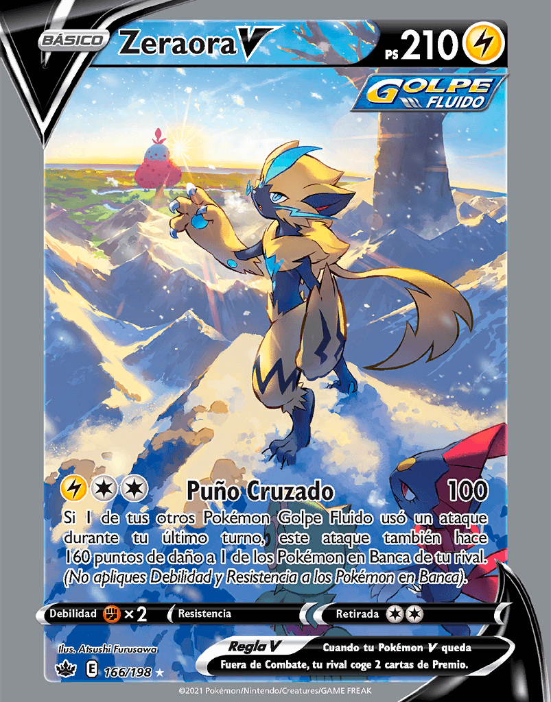 Cuando tu Pokémon V queda Fuera de Combate, tu rival coge 2 cartas de Premio. |
