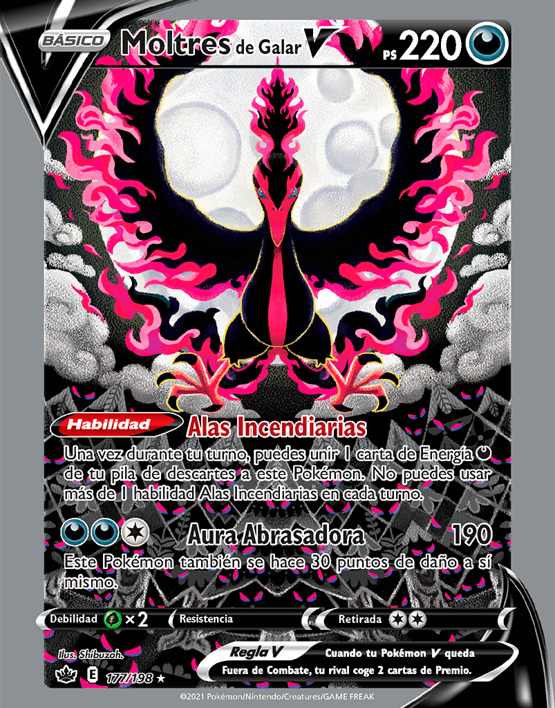 Cuando tu Pokémon V queda Fuera de Combate, tu rival coge 2 cartas de Premio. |