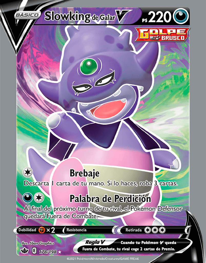 Cuando tu Pokémon V queda Fuera de Combate, tu rival coge 2 cartas de Premio. |