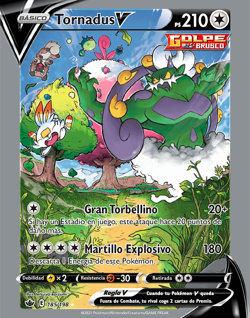 Cuando tu Pokémon V queda Fuera de Combate, tu rival coge 2 cartas de Premio. |