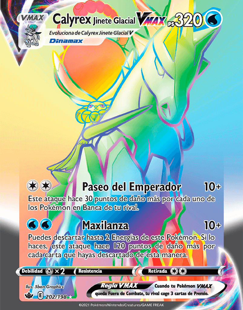 Cuando tu Pokémon VMAX queda Fuera de Combate, tu rival coge 3 cartas de Premio. |