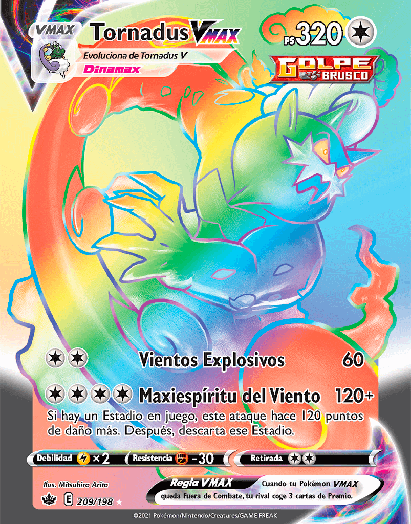 Cuando tu Pokémon VMAX queda Fuera de Combate, tu rival coge 3 cartas de Premio. |