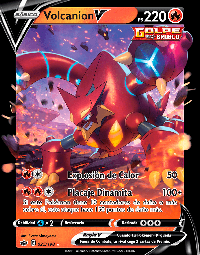 Cuando tu Pokémon V queda Fuera de Combate, tu rival coge 2 cartas de Premio. |
