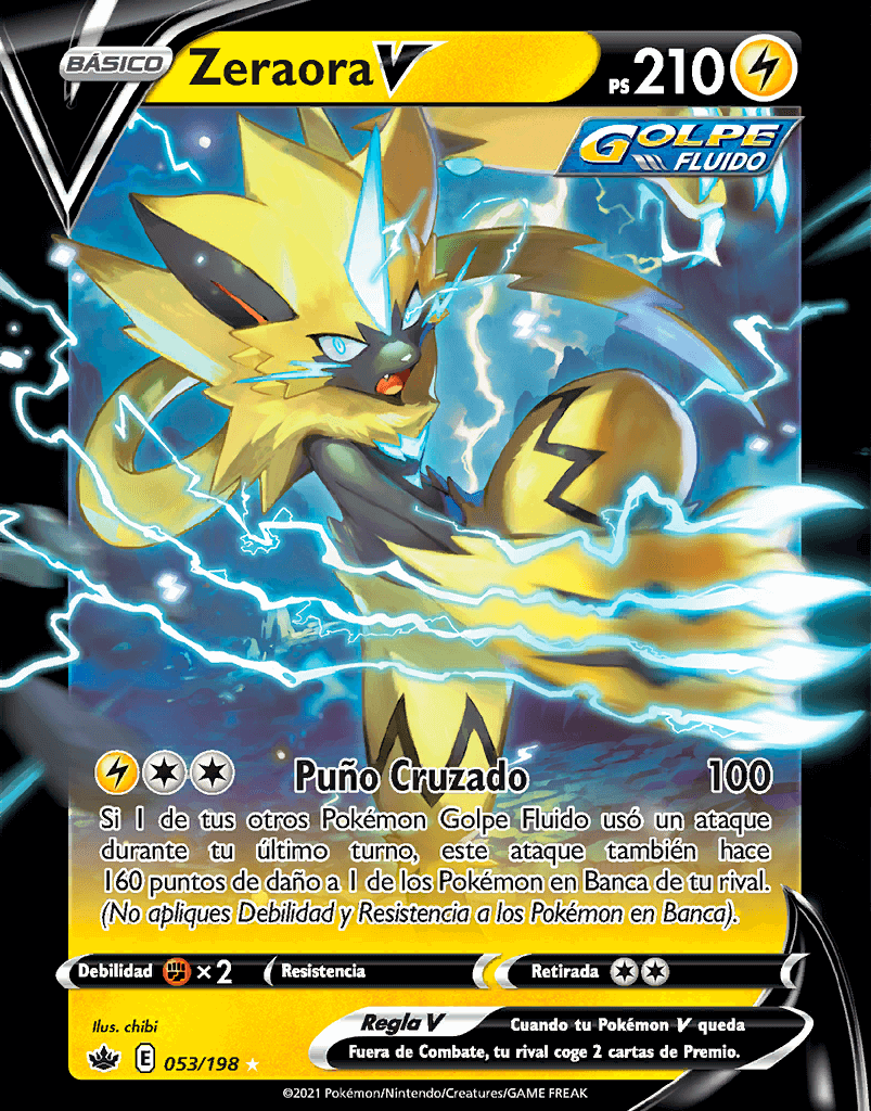 Cuando tu Pokémon V queda Fuera de Combate, tu rival coge 2 cartas de Premio. |
