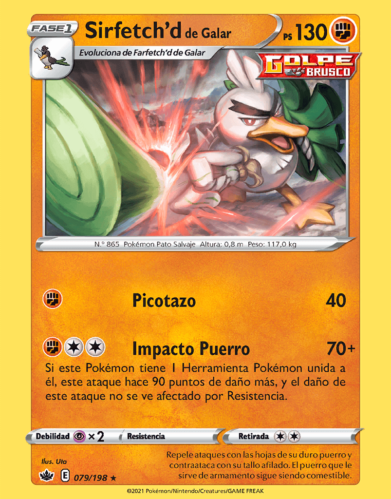 Impacto Puerro Si este Pokémon tiene 1 Herramienta Pokémon unida a él, este ataque hace 90 puntos de daño más, y el daño de este ataque no se ve afectado por Resistencia. |