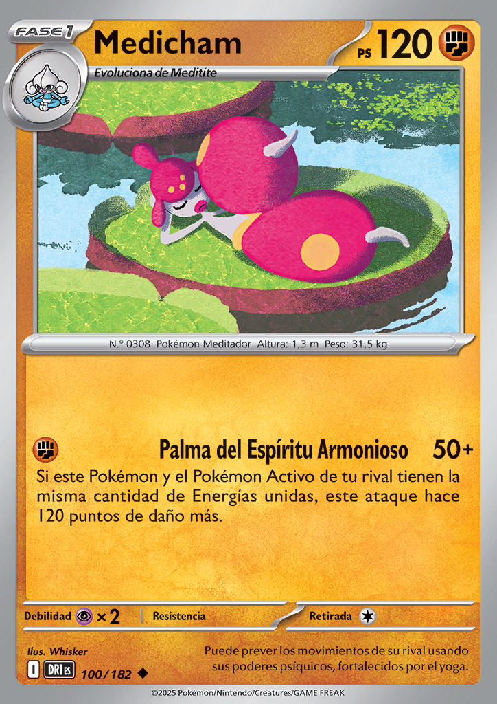 Palma del Espíritu Armonioso Si este Pokémon y el Pokémon Activo de tu rival tienen la misma cantidad de Energías unidas, este ataque hace 120 puntos de daño más. |