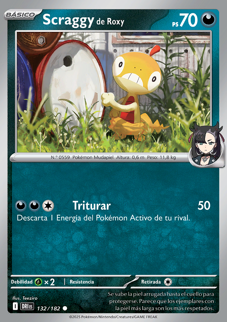 Triturar Descarta 1 Energía del Pokémon Activo de tu rival. |