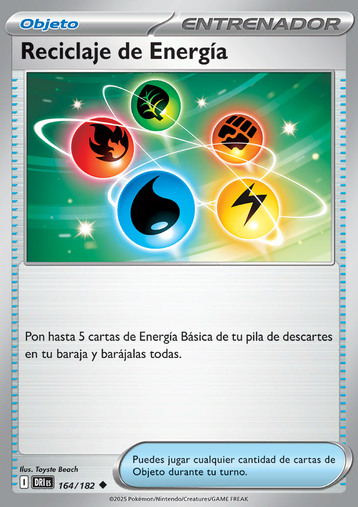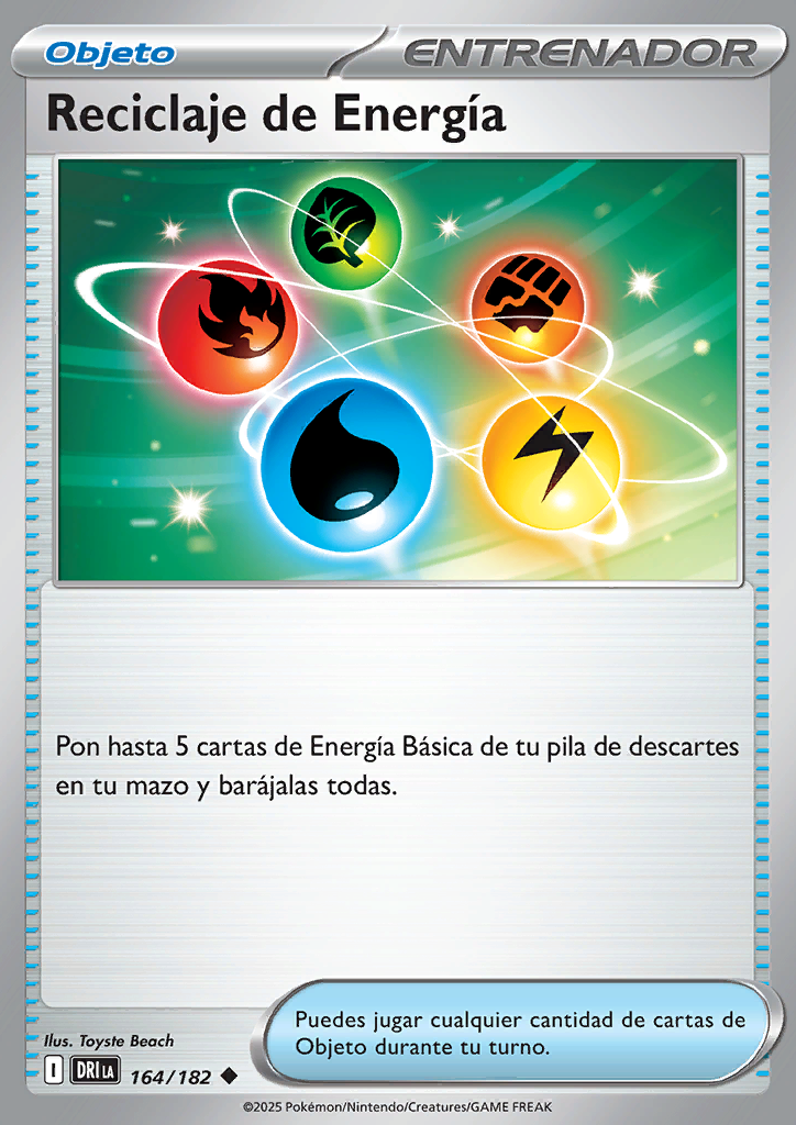 | Pon hasta 5 cartas de Energía Básica de tu pila de descartes en tu baraja y barájalas todas. |