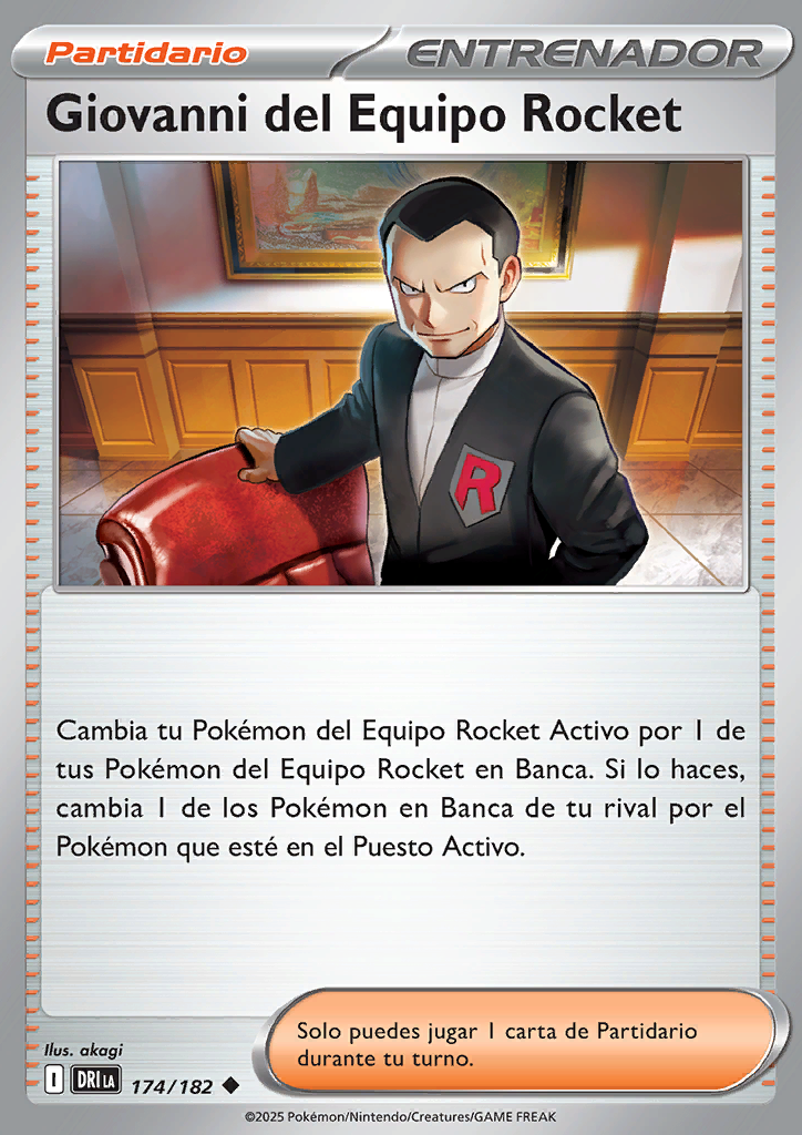 | Cambia tu Pokémon del Team Rocket Activo por uno de tus Pokémon del Team Rocket en Banca. Si lo haces, cambia 1 de los Pokémon en Banca de tu rival por el Pokémon que esté en el Puesto Activo. |