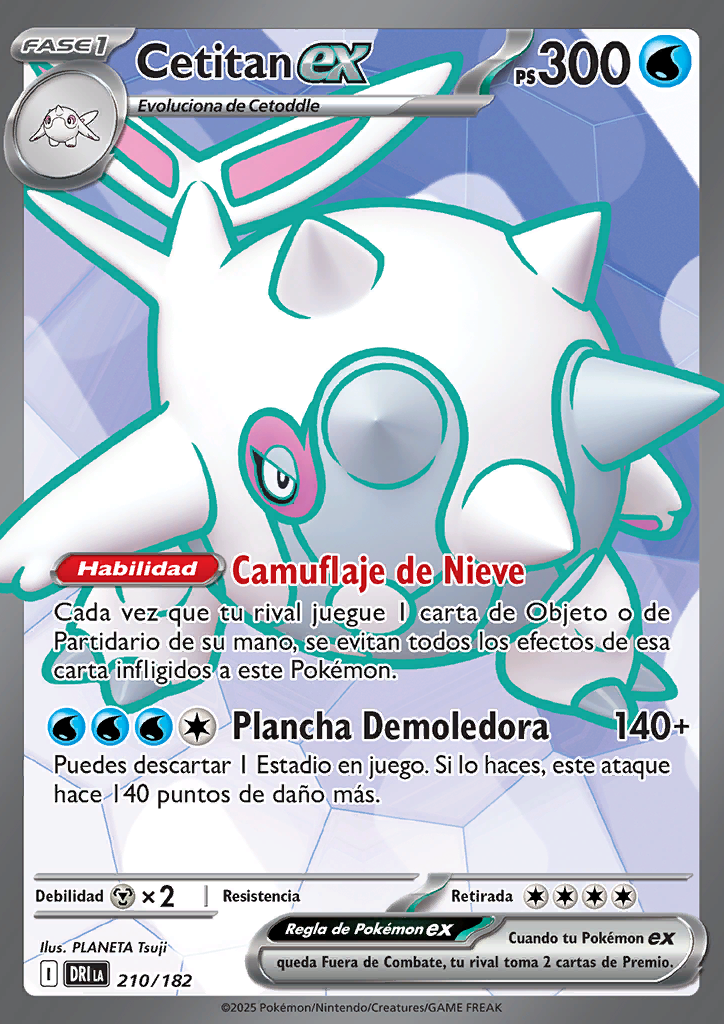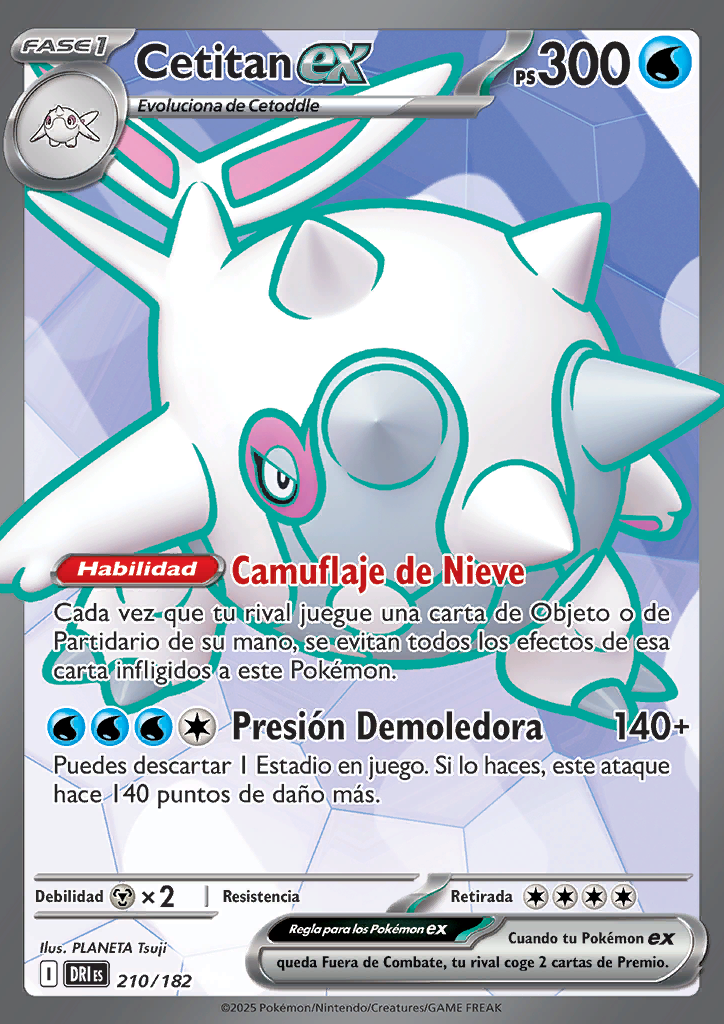 Presión Demoledora Puedes descartar 1 Estadio en juego. Si lo haces, este ataque hace 140 puntos de daño más. |