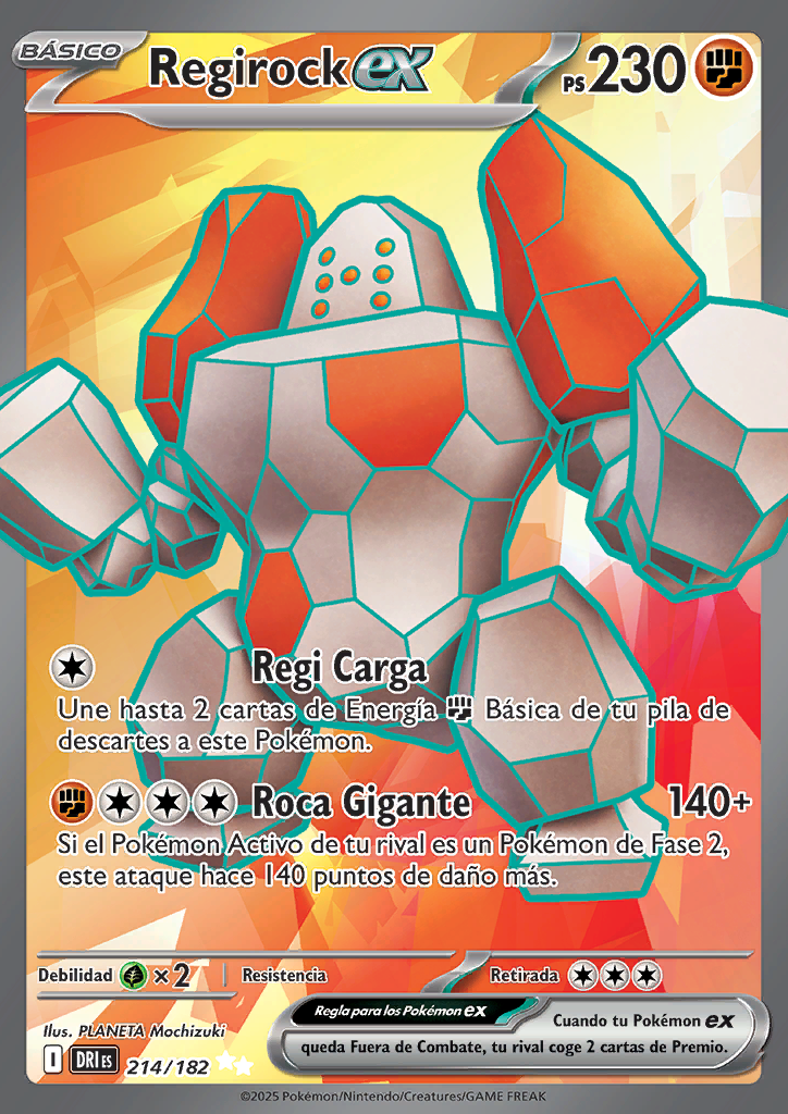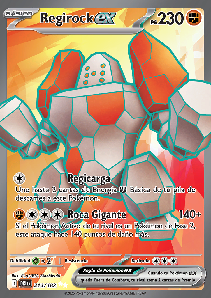 Roca Gigante Si el Pokémon Activo de tu rival es un Pokémon de Fase 2, este ataque hace 140 puntos de daño más. |