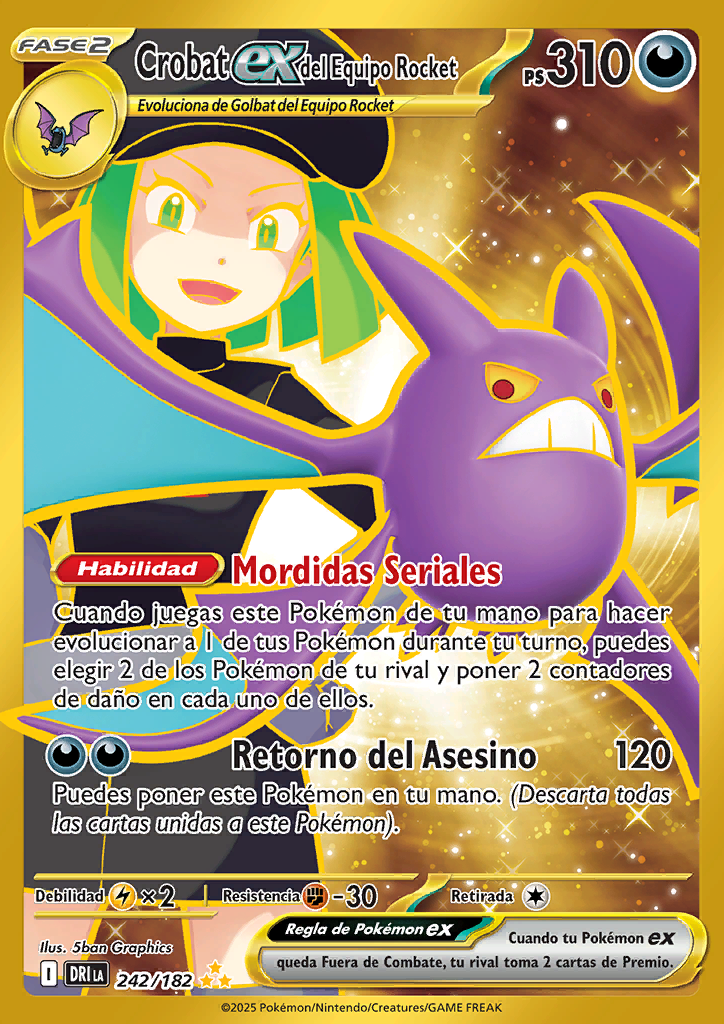 Retorno del Asesino Puedes poner este Pokémon en tu mano. (Descarta todas las cartas unidas a este Pokémon). |