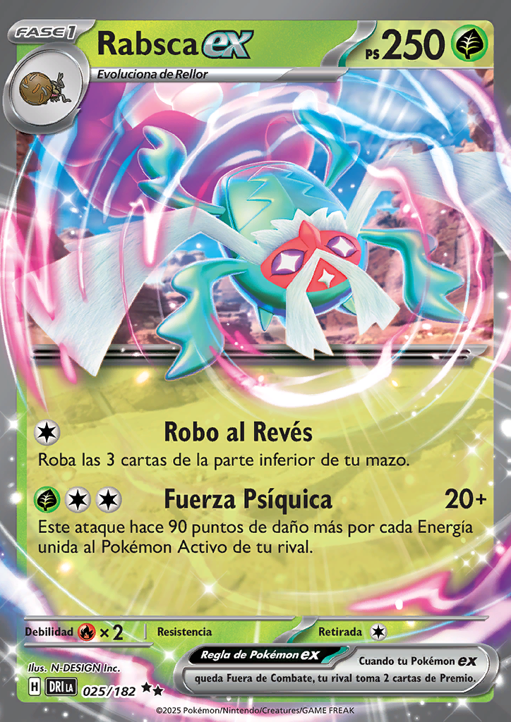 Psíquico Este ataque hace 90 puntos de daño más por cada Energía unida al Pokémon Activo de tu rival. |