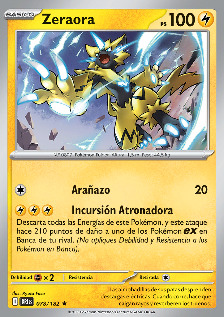 Incursión Atronadora Descarta todas las Energías de este Pokémon, y este ataque hace 210 puntos de daño a uno de los Pokémon ex en Banca de tu rival. (No apliques Debilidad y Resistencia a los Pokémon en Banca). |