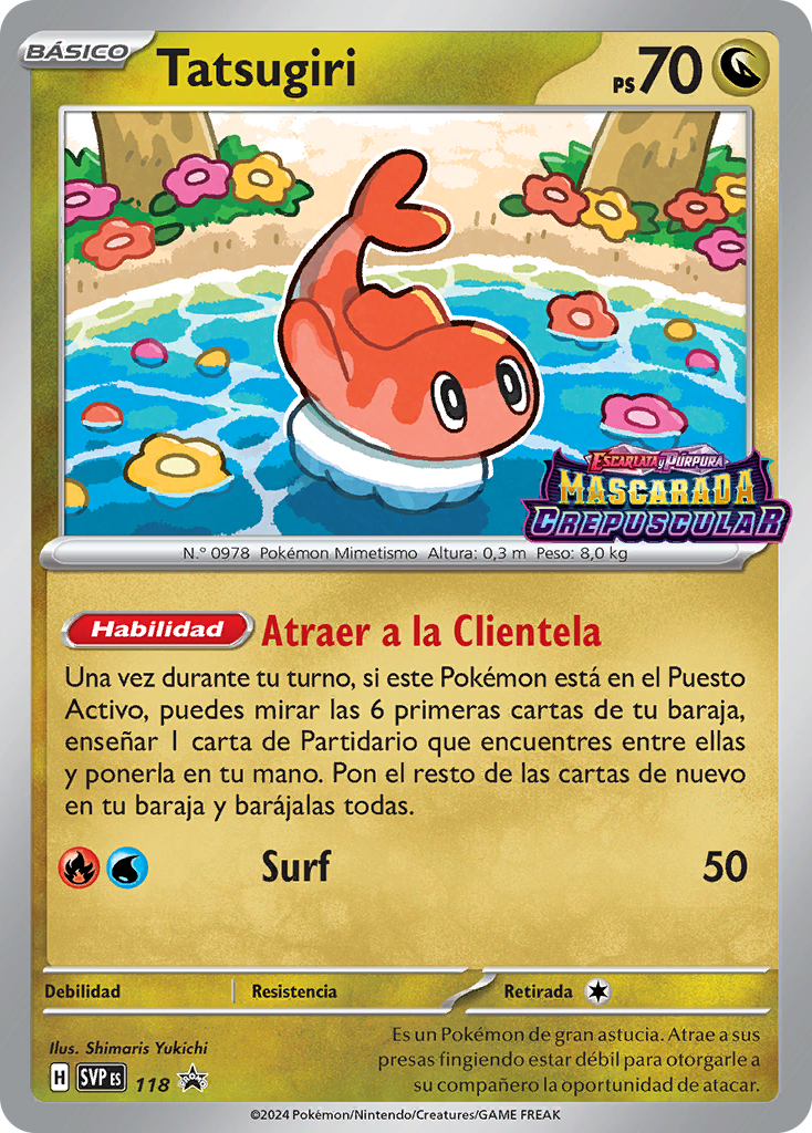 | Una vez durante tu turno, si este Pokémon está en el Puesto Activo, puedes mirar las 6 primeras cartas de tu baraja, enseñar I carta de Partidario que encuentres entre ellas y ponerla en tu mano. Pon el resto de las cartas de nuevo en tu baraja y barájalas todas. | |