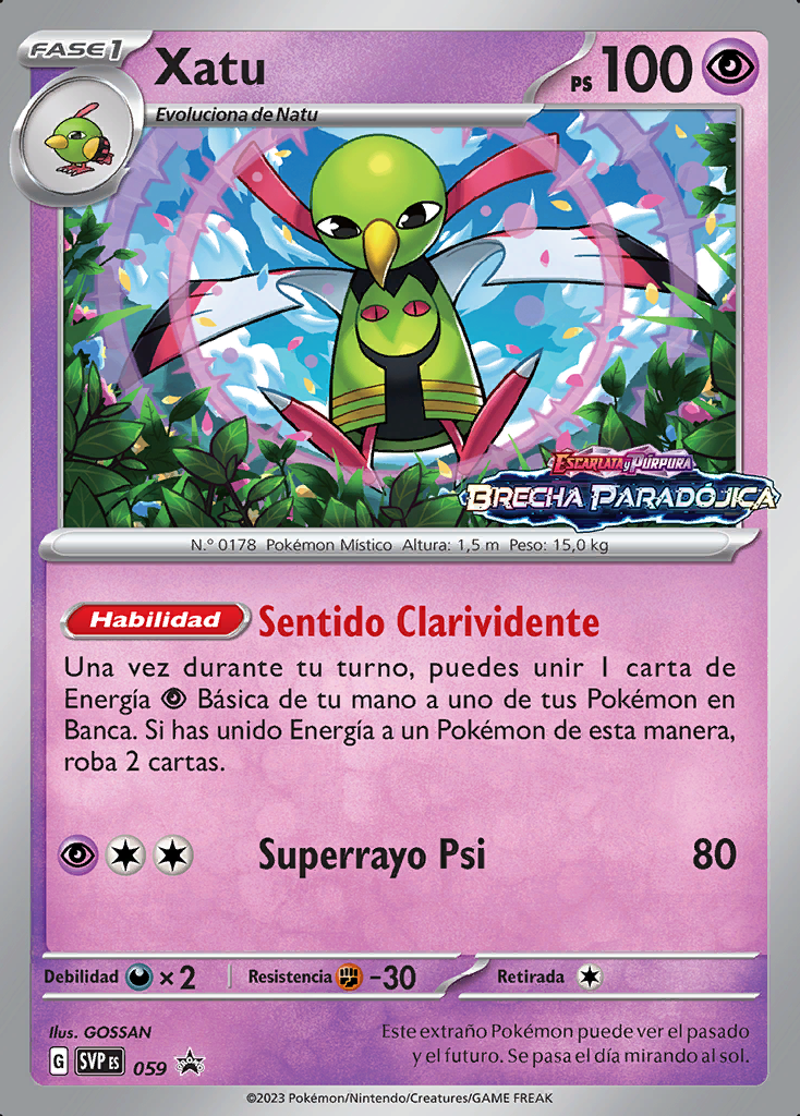 | Una vez durante tu turno, puedes unir 1 carta de Energía Básica de tu mano a uno de tus Pokémon en Banca. Si has unido Energía a un Pokémon de esta manera, roba 2 cartas. | |