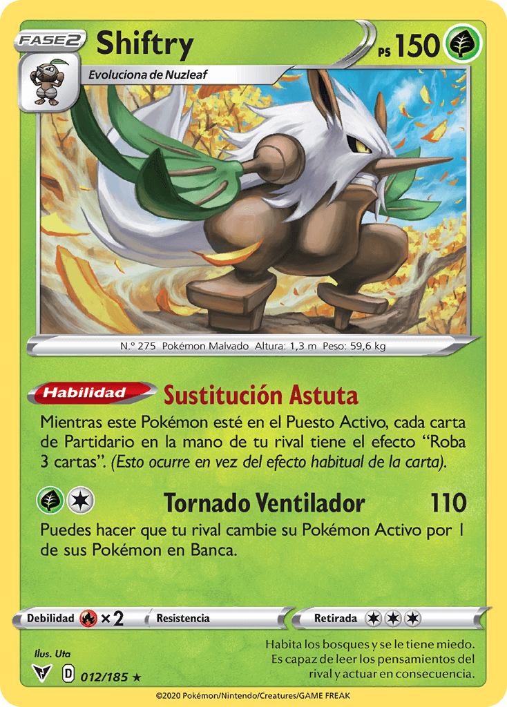 Tornado Ventilador Puedes hacer que tu rival cambie su Pokémon Activo por 1 de sus Pokémon en Banca. |