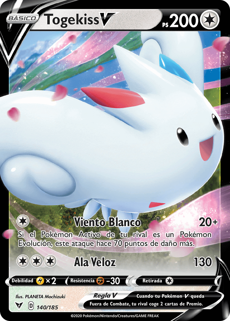 Cuando tu Pokémon V queda Fuera de Combate, tu rival coge 2 cartas de Premio. |