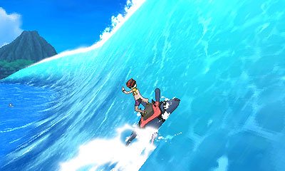 En Ultrasol y Ultraluna, podrás divertirte practicando el Surfeo Mantine, y cabalgar las olas a lomos de este Pokémon.